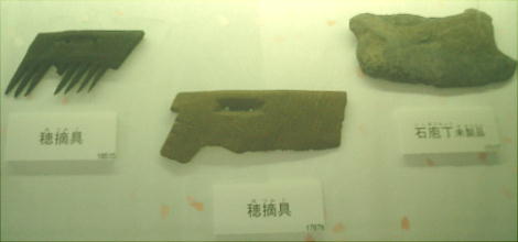 の糧を得るための道具が多い。また炭化した米や、シカ、イノシシなどの獣、鳥類、魚類の骨も多く発見され