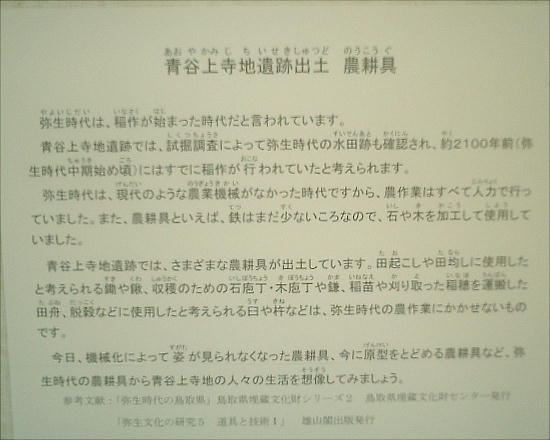 広がっていたと考えられており、海を介した交易が行われていたのであろう。青谷上寺地遺跡では農業や漁業