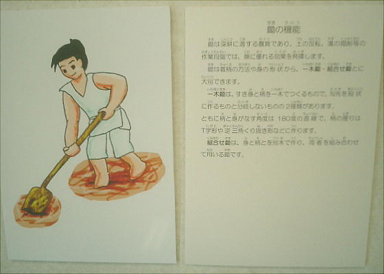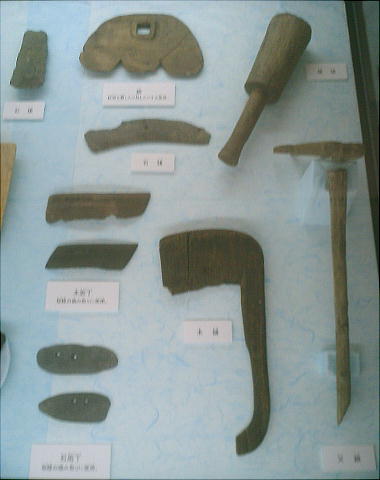 田を開墾するための鋤や鍬、稲穂を摘み取る石庖丁、狩猟用の鏃、魚を捕らえる銛や釣り針、タモなど、日々