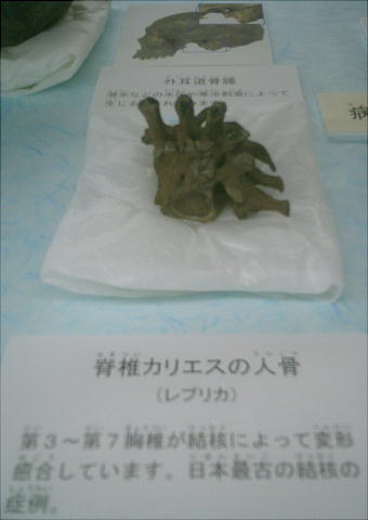 脊椎カリエス症によってほとんど直角に曲がってしまった背骨。国内最古例。