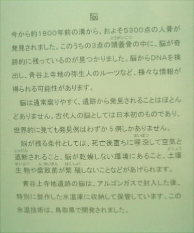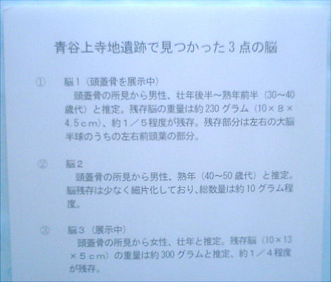 耳目を集めたのは「弥生人の脳」である。今後のDNA鑑定などが期待されたが、結局DNA鑑定はできなかった。