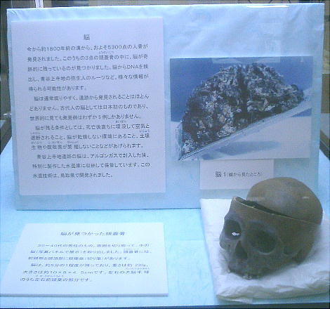 脳である。脳を発見した鳥取大医学部、井上貴央教授によれば、この遺跡の泥にも脳の保存に役立った秘密