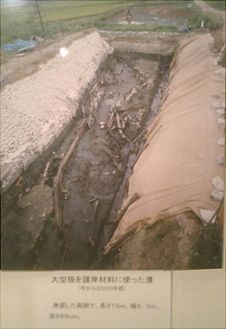 集落の廻りに幾つかの溝があり、溝は矢板列を伴うもので一部に通路かと考えられる区画がもうけられてお