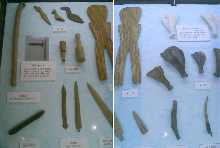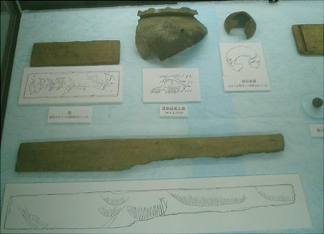 る。典型的な弥生時代の出土物(土器や木工製品など)の他にも特筆すべき点がいくつかある。報告では、