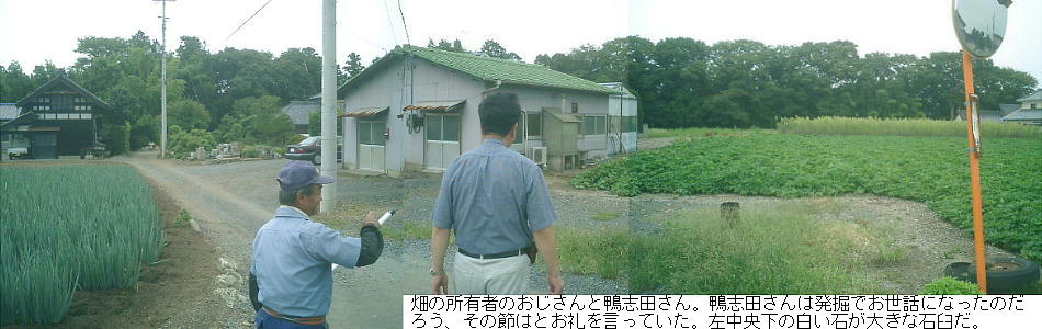 畑の中にある貝塚。ここからは、土偶、骨角器、人骨などが出土した貴重な遺跡である。上の写真で畑の中に白く見えるものは