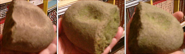 ち指さして教えてくれる。下はここから貰ってきた小型の石臼の半分に欠けた物。もしかしたら石器時代かもしれないが、少な