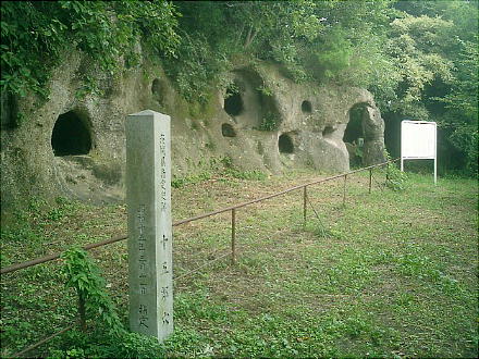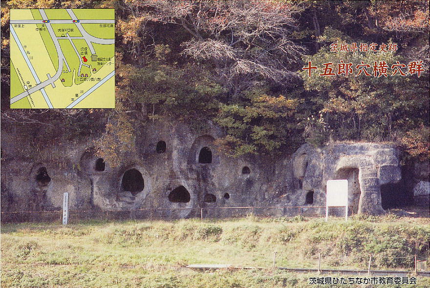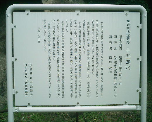 茨城県指定史跡 十五郎穴横穴群 指定年月日 昭和十五年三月十一日 所在地 勝田市中根館出三四九〇