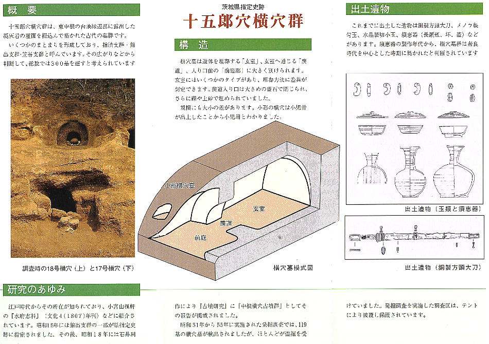 十五郎穴は古墳時代末期から奈良時代にかけて造られた集団埋葬墓である。台地の崖に横から穴を掘り、造っているものを横穴