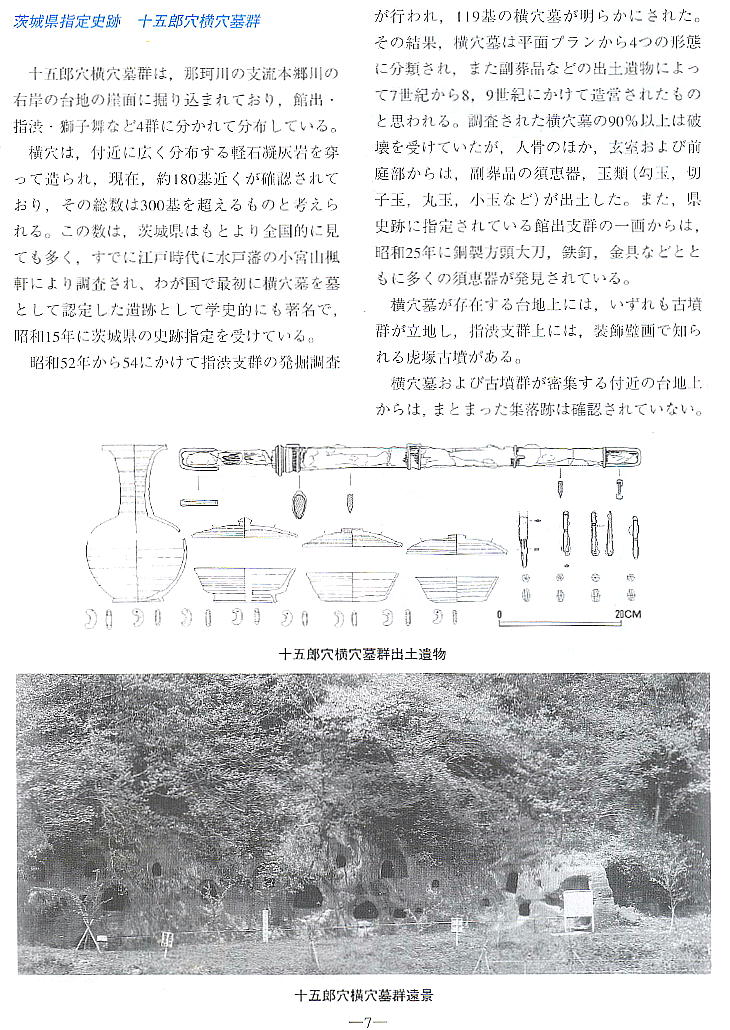 似した構造になっている。横穴墓からは須恵器、直刀、鉄製品など数多くの副葬品が出土している。十五郎穴横穴墓群は、館出、