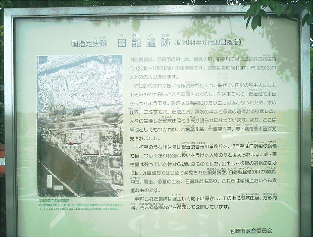 のくらしや文化を知る発端となった。これらの出土遺物から、田能遺跡が弥生時代のほぼ全期間に及ぶ大集落跡ということが