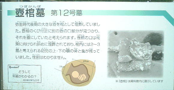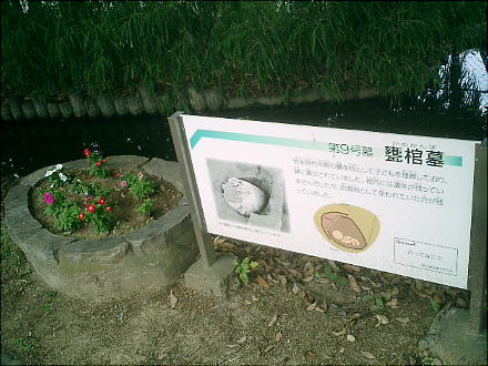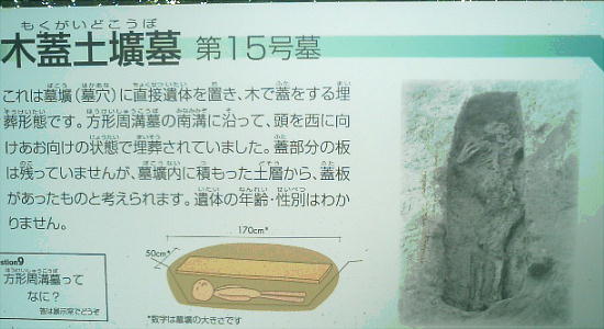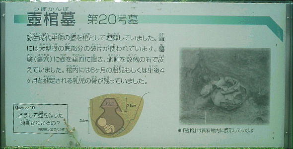 物をはじめ、住居跡や柱穴・溝などの遺構が発掘された。なかでも、木棺墓や壺棺墓等をはじめとする墓の発見は、当時まだ