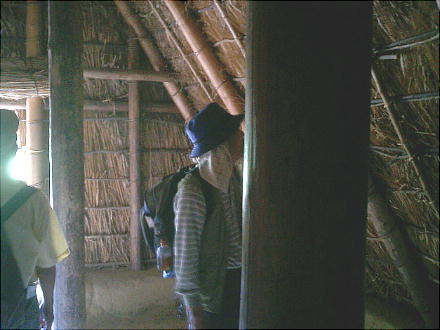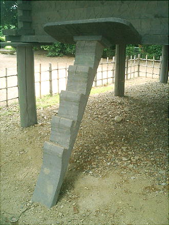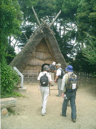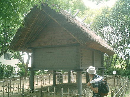 たないので遺跡そばの小さな広場で、金網越しに復元された高床式倉庫を眺めながら昼食となった。少し汗ばんでいたので、