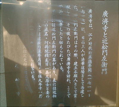 で、多くの名作を残した。広済寺再興の開山講には近松も名を連ねたり、母の供養を行うなど広済寺とは深いつながりが窺