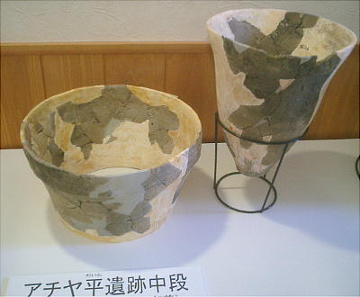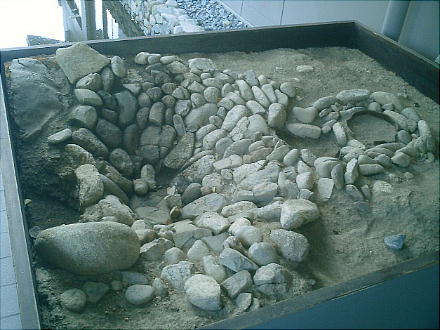アチヤ平遺跡にあった環状配石(ストーンサークル)の復元。縄文時代後期約4,000年前。長さ40〜60cmくらいの大
