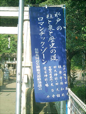 正8年(1593)現在地に遷座された。水戸7社のひとつとして火伏せ(防火)の神として信仰されている。