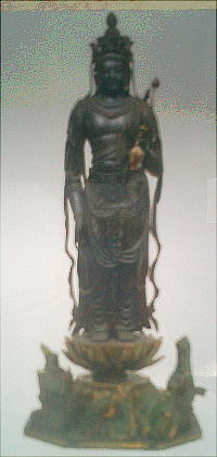 <国宝十一面観音立像> 菅原道真が太宰府へと左遷される途中、伯母の覚寿尼に別れを告げるため立ち寄った土師寺(道明寺)で、自らの手で一 夜で彫ったと伝えられ、国宝に指定されている。どう考えても一夜で作ったとは思えないが、団体で予約しないと、ポッ と行っても見れない。