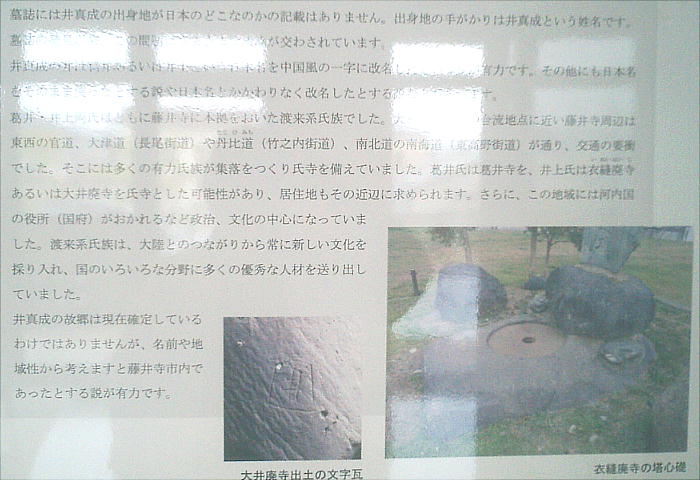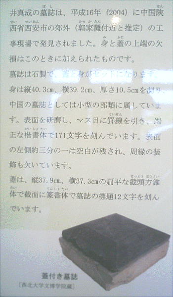 藤井寺の新しい目玉商品「井真成」(いのまなり)。井上氏の一族。