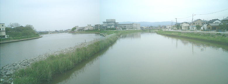 羽咋市内を流れる羽咋川。自動車学校のすぐ北を流れている。この上流が邑知潟(おうちがた)である。弥生時代からの穀倉地帯だ。
