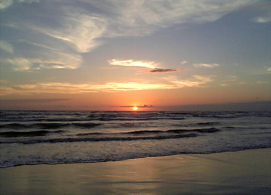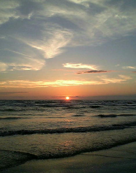 羽咋の千里浜海岸に沈む夕陽。日中晴れた日の夕焼けはすばらしい光景だった。この美しさはとてもデジカメなどでは表