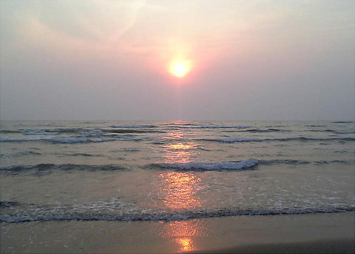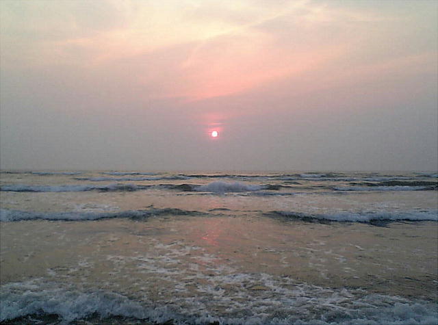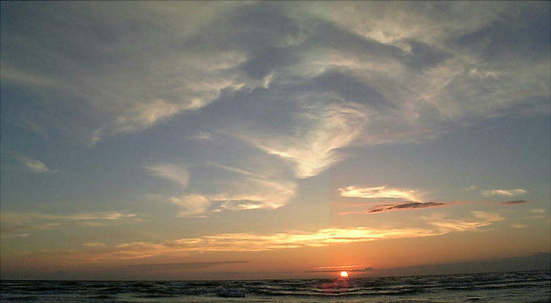 上をクリックして貰うと、下手なパノラマが見れます。以下は別の日の夕陽。日によって夕焼けも微妙に変化する。