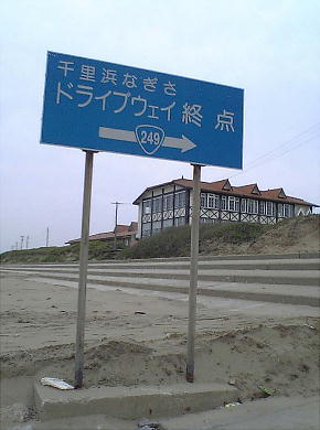 自動車学校のすぐ裏、歩いて2,3分のところが千里浜(ちりはま)海岸である。この直前まで渚のハィウェーが続く。