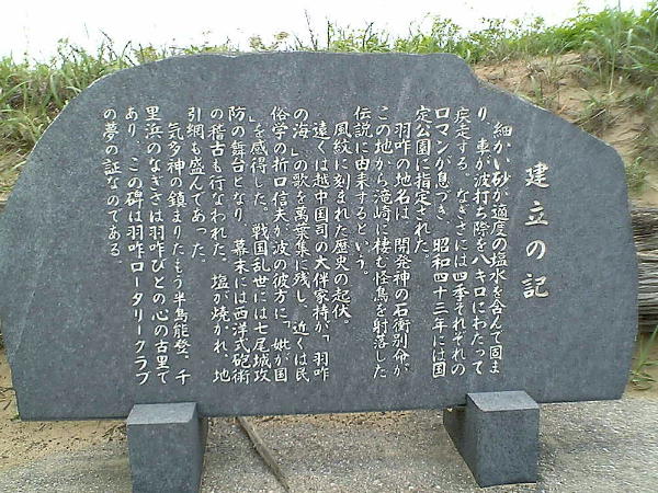 この碑の側に、羽咋へやってきた大伴家持の碑も立っているが、それは「遺跡巡り」の「寺家(じけ)遺跡」から入る、