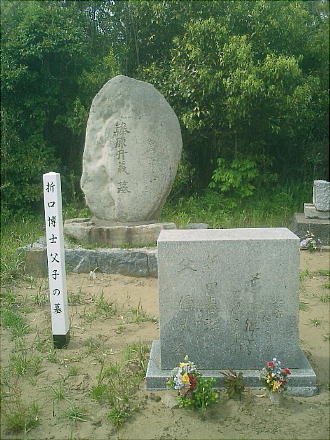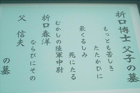 仮免受かってからの路上コースで廻る途中に、折口信夫(おりぐちしのぶ)の墓というのがあったので、学校の自転車を