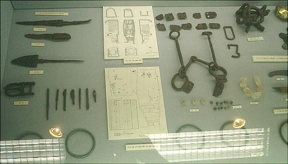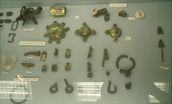 虎塚古墳から出土した武具・馬具の類。ほんとに全国の古墳の画一性には驚く。たまには弥生土器や縄文時代の腕輪など