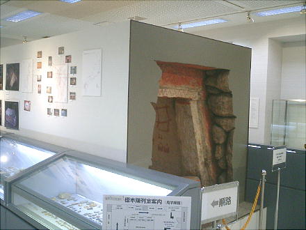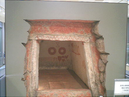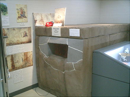 上は、奈良飛鳥の高松塚古墳の石室レプリカ。