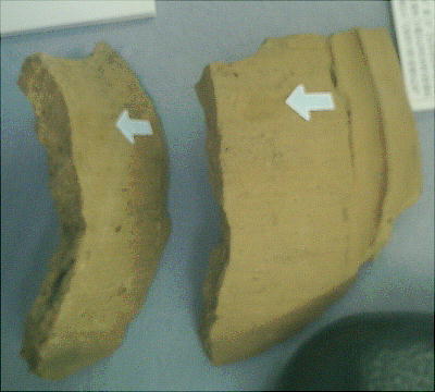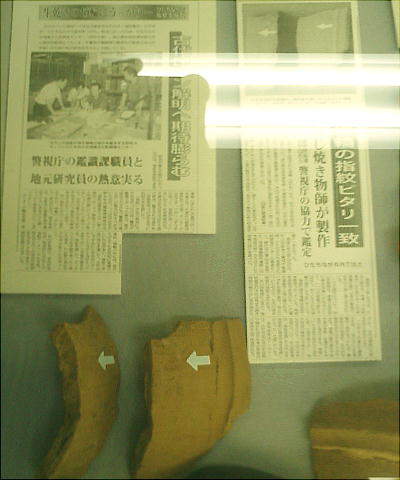二つの土器についた指紋が同一人のものだったという、全国的にもきわめてまれな出土例。