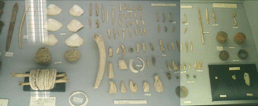 三反田貝塚から出土した遺物の数々。人骨も出土している。