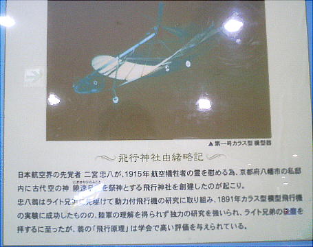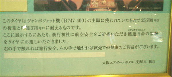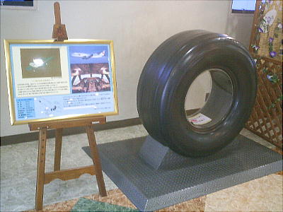 ロイヤルの前に、飛行機のタイヤが展示してあった。うちの家族が7年間住んだ、京都府八幡市の飛行神社の記事があった。