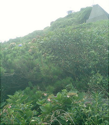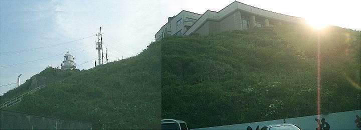 崖の上にある建物が今夜の宿である。傍には灯台がある。ということは、ここが付近の海から見て一番ちかい陸なのかな。