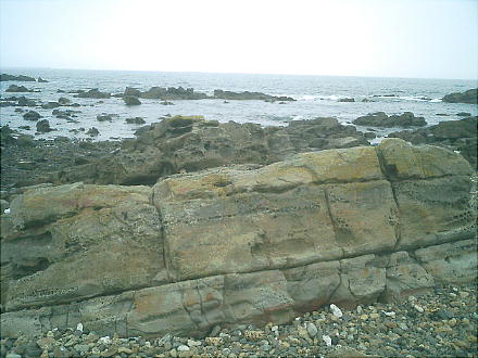 すぐ下の海岸は白亜紀の段丘が露出した海岸なのだ。海岸を歩けば中世代白亜紀層が見られる。化石も露出している。