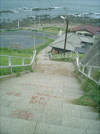 石段を降りていく途中で何かが前を横切った。イタチだった。草むらを左から右へ走ったが、久しぶりに見た。