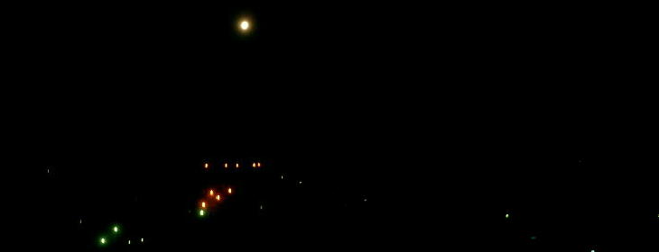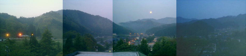 部屋の窓から見た夜の月(上)と朝の月(下)