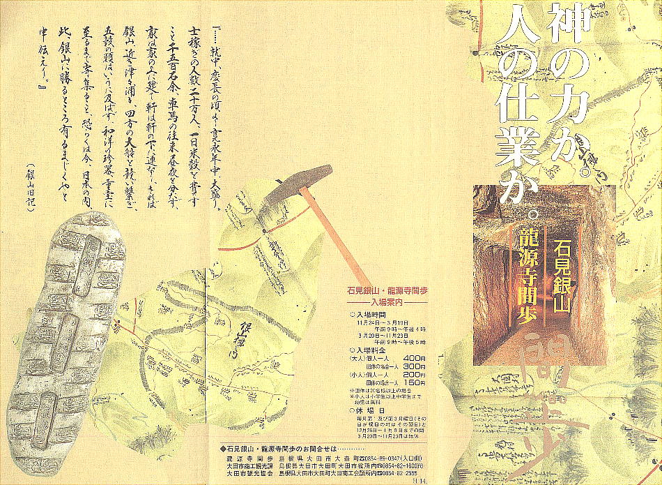平成 1993 平成5 大田市による石銀(いしがね)地区発掘調査開始。採掘、精錬の跡や関連遺物が発見される