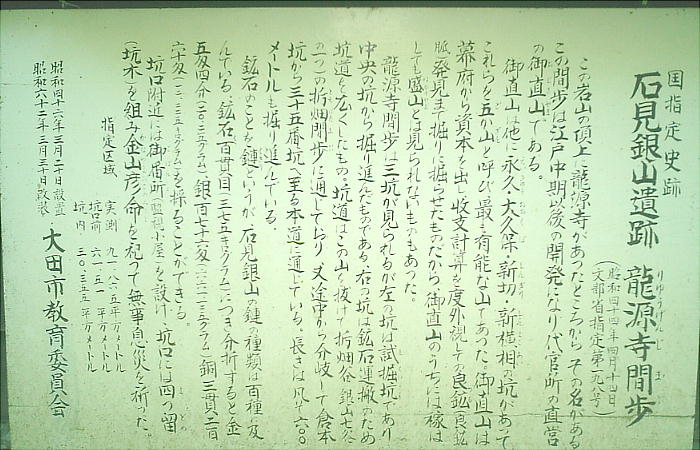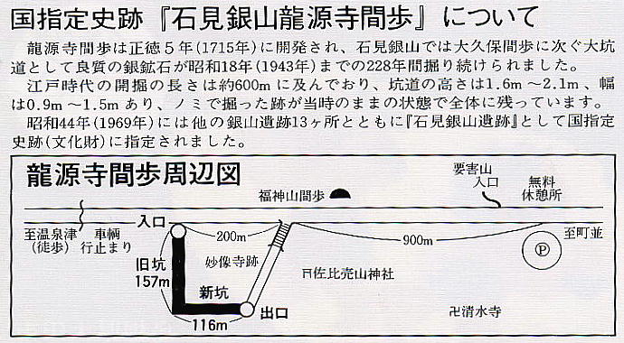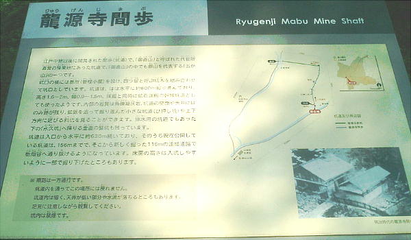 この周辺に600ばかりの間歩(まぶ:坑道)があり、その中でたった一つ公開されているのが龍源寺間歩である。開発された