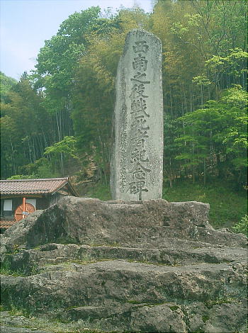 上左はクリックで拡大しまちゅ。駐車場の隅に「西南の役戦死者記念碑」というのがあったが、説明書きは何もなかった。