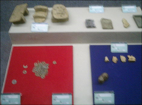 坑道から出たところに茶店のような土産物屋があって(上左)、覗いてみると銀珠や銀小判などを打っていたがエラい高かった。