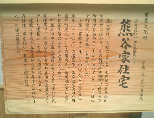 重要文化財熊谷家住宅。大森地区における最大規模の商家建築。有力商人の地位や生活の変遷を最もよく示している。代官所の