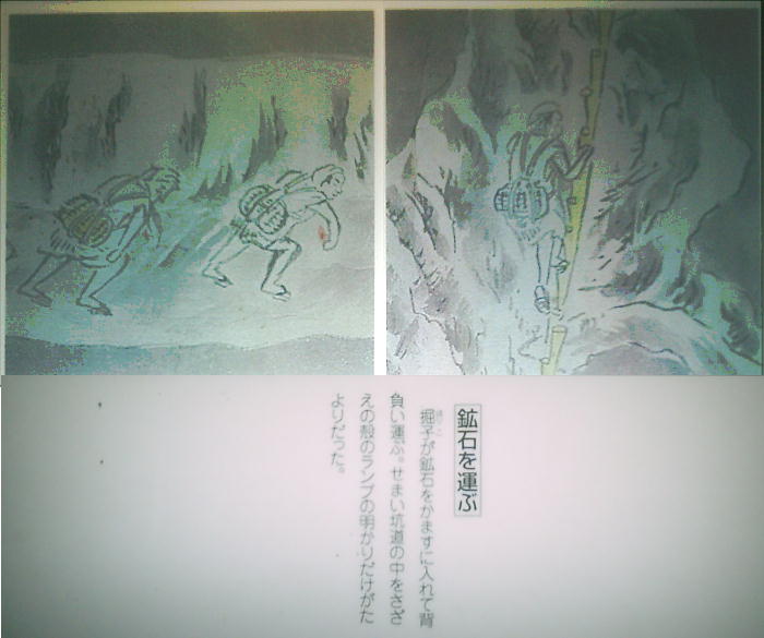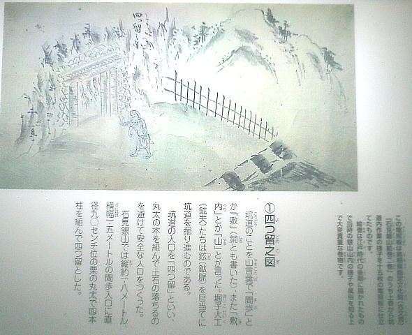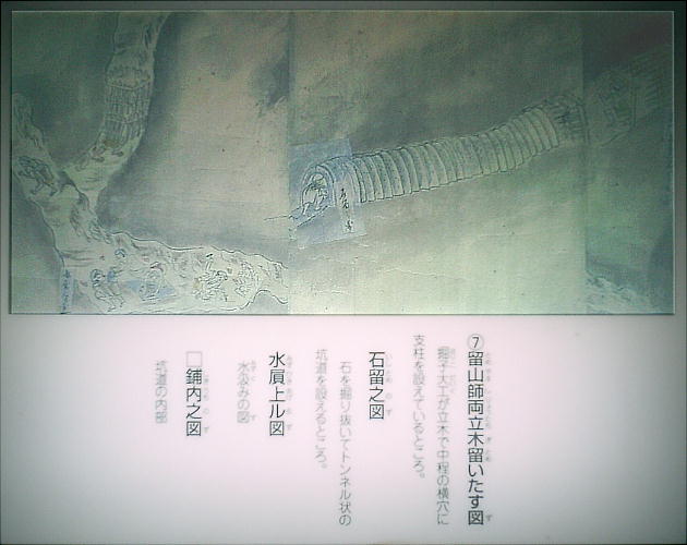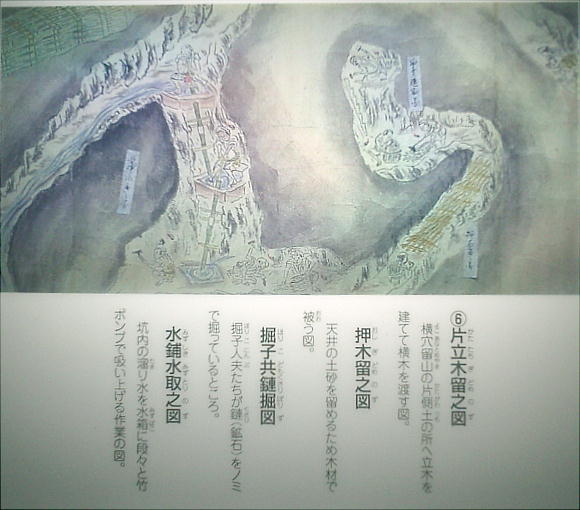 とから石見についてみると基本となる絵巻1系統しか存在しなかったことを示している。坑道の終わり頃に、「石見銀山絵巻」