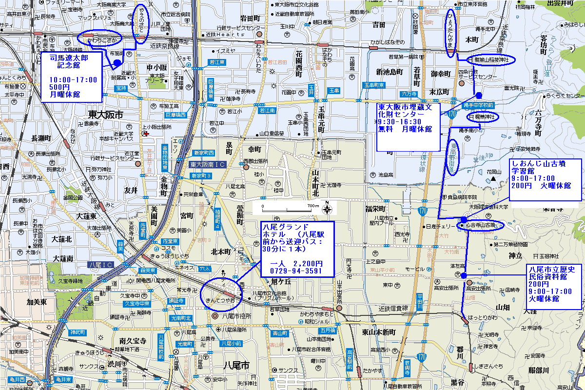 (しおんじやま)古墳 − しおんじ山古墳学習館 − 八尾市立歴史民族資料館 − 高安千塚古墳群 −