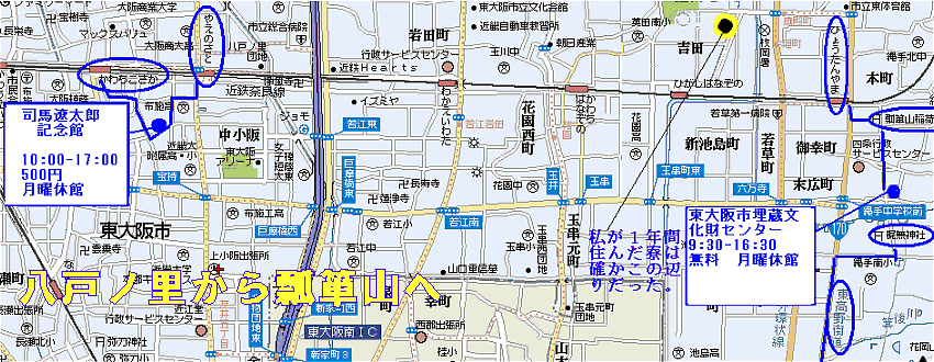<行程>: 近鉄河内小阪駅 − 司馬遼太郎記念館 − 近鉄八戸ノ里 −(近鉄電車)− 近鉄瓢箪山駅 −