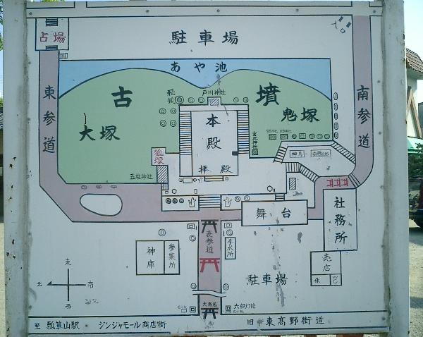 この神社の裏手が双憤になっており、瓢箪山という名前はそこからきた。このあたりは山畑古墳群として有名で、ここから裏