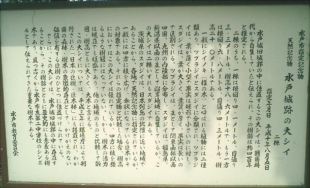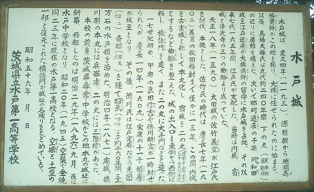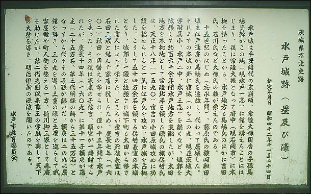 徳川御三家の一家、水戸徳川家の城である。この城は、那珂川沿いの河岸段丘の果てる地にあり、背後は千波湖に接してい