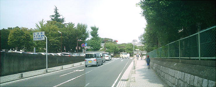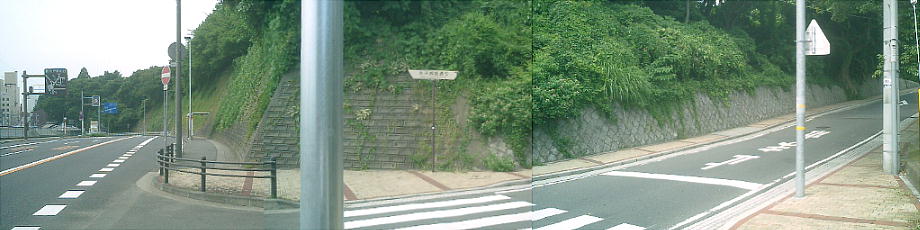 水戸駅を出て、ぐるりとかっての水戸城を一回りしてくると、右手からこの道へ降りてくる。上左の道を下っていくと、5,