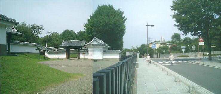 現在は、本丸跡(現在水戸一高)の校舎の裏に立つ橋詰門が唯一の当時の建物である。本丸への虎口。この先(本丸内)は