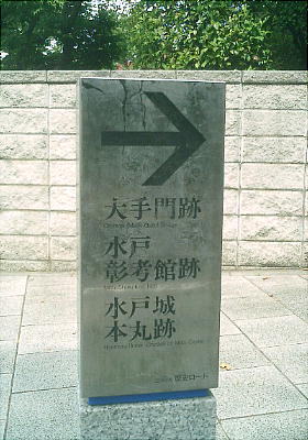 6分で「水戸光圀誕生の地」へ出て、さらに2,3分でJR水戸駅へ戻る。かっての城内には、中学校・高校が幾つか建っ