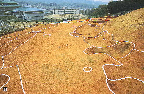 平成14年12月17日高取町教育委員会は、高取町大字森の「森カシ谷遺跡」の丘陵上に物見櫓(やぐら)と見られる
